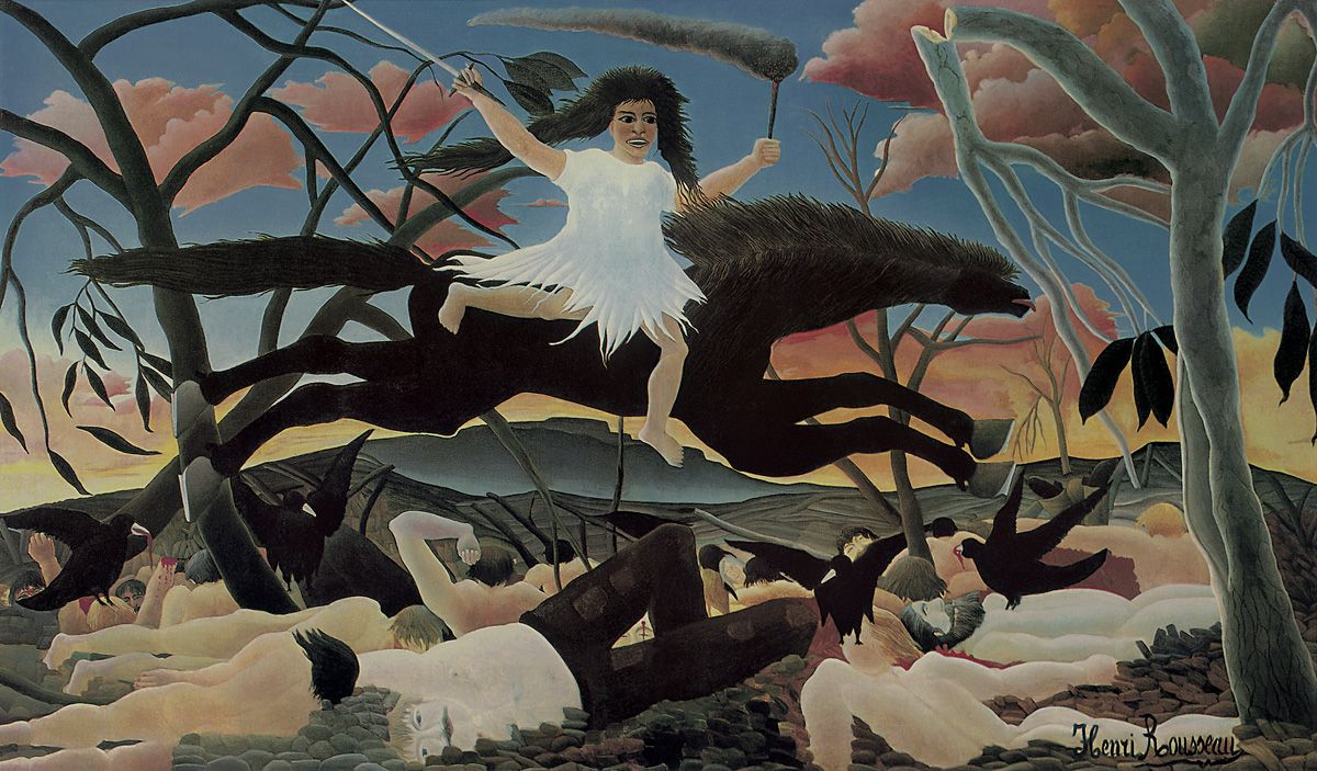 Henri Rousseau, llamado el Aduanero Rousseau, La Guerra o La Cabalgata de la discordia, 1894. Óleo sobre tela, 114 x 195 cm. Museo de Orsay, París.