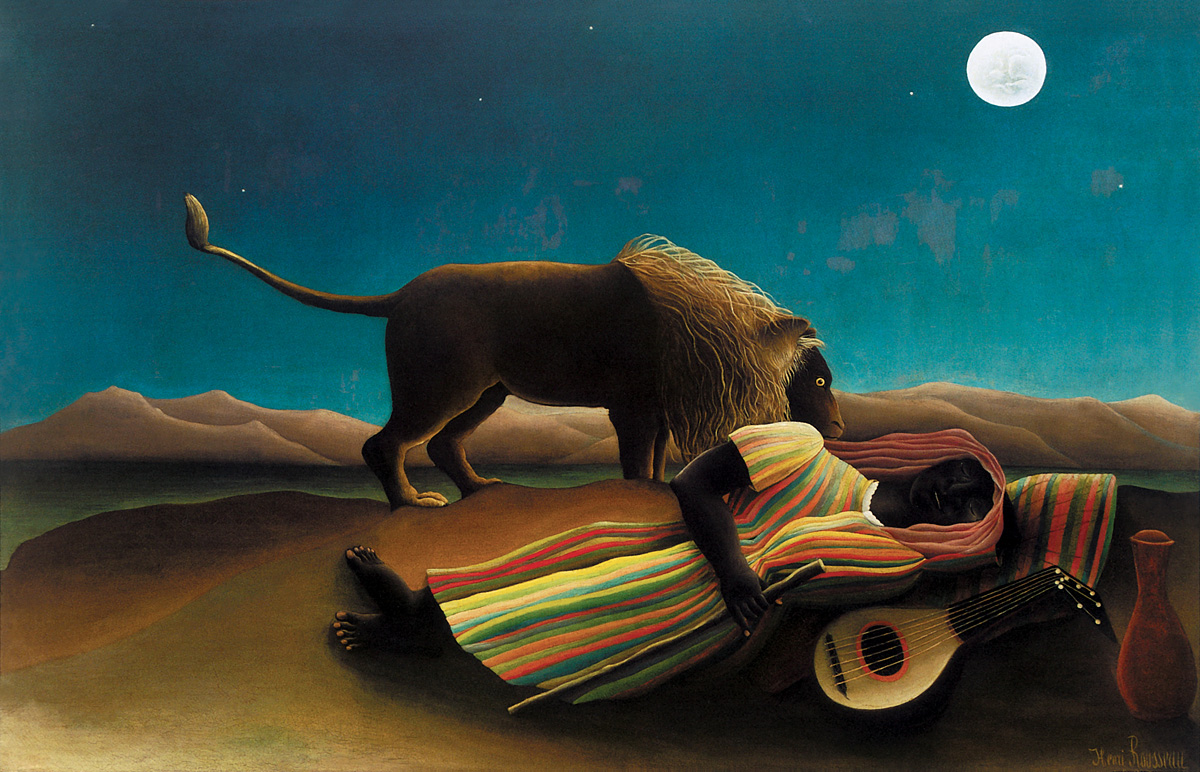 Henri Rousseau, llamado el Aduanero Rousseau, La Bohemia dormida, 1897. Óleo sobre tela, 129.5 x 200.7 cm. The Museum of Modern Art, Nueva York.