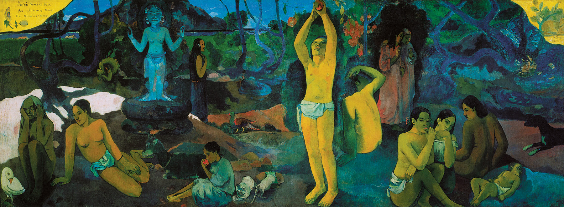 Paul Gauguin, ¿De dónde venimos? ¿A dónde vamos?, 1897-1898. Óleo sobre tela, 139.1 x 374.6 cm. The Museum of Fine Arts, Boston.