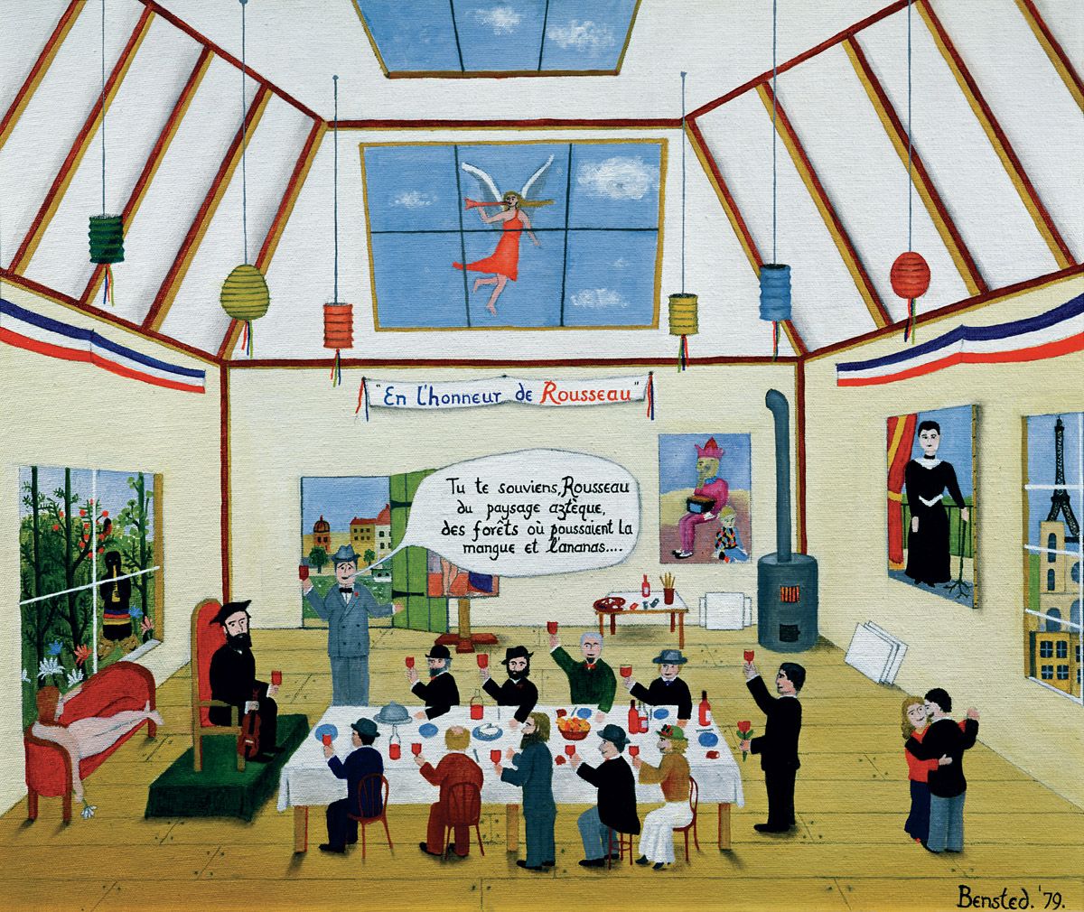 Picasso estuvo lejos de ser el único en interesarse en el trabajo de Rousseau, quien había vendido ya uno o dos lienzos al comerciante Ambroise. Entre sus amigos se contaban dos jóvenes artistas, Sonia y Robert Delaunay. Otro amigo, el historiador de arte alemán Wilhelm Uhde, organizó en 1908 la primera exposición personal de Rousseau en una de las salas de un vendedor de muebles parisiense. En 1908 Picasso y sus amigos se reunieron en Ravignan, en el célebre café Bateau-Lavoir, y organizaron “una fiesta en honor de Rousseau”. Más de treinta personas participaron. Además de los amigos cercanos y los parroquianos del Bateau-Lavoir, estuvieron también presentes el crítico Maurice Raynal, lo mismo que los estadounidenses Gertrude Stein y su hermano Leo. En la década de 1960, el pintor naif Manuel Blasco Alarcón, primo de Picasso, realizó de memoria un cuadro que representa el famoso “Banquete Rousseau”: Henri Rousseau toca el violín sobre una tarima teniendo detrás de él uno de sus lienzos y los convidados sentados a la mesa: Picasso, Gertrude Stein, Guillaume Apollinaire y Marie Laurencin.