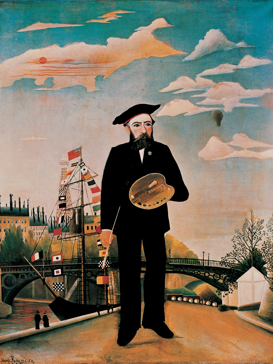 El célebre cuadro de 1890, que Rousseau no denominó “Autorretrato”, con esta altivez sincera que le era característica, sino Yo mismo, Retrato-paisaje, Museo Nacional de Praga, ha confirmado la imagen del pintor no-profesional. En una de sus notas autobiográficas, Rousseau escribió: “Como signo característico, lleva la barba enmarañada y forma parte ya desde hace mucho tiempo de los Independientes y piensa que toda libertad de producir debe dejarse al iniciador, con el pensamiento que surge en la Belleza y el Bien”[7].