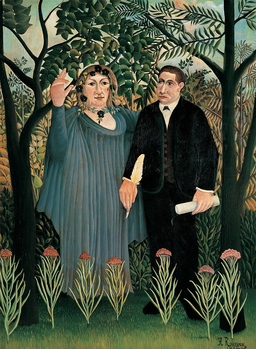 Henri Rousseau, llamado el Aduanero Rousseau, Guillaume Apollinaire y Marie Laurencin, 1909. Óleo sobre tela, 200 x 389 cm. Museo del Hermitage, San Petersburgo.