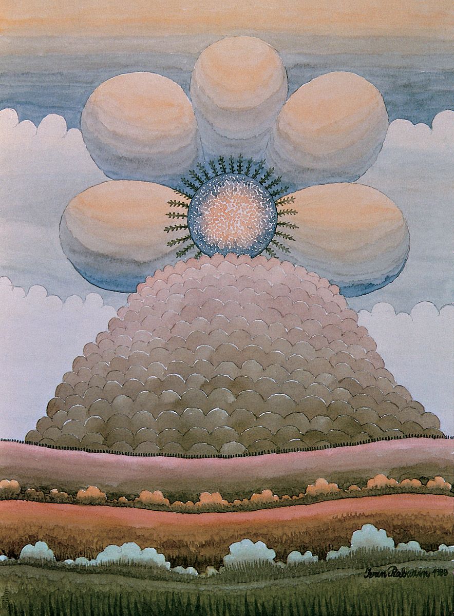 Iván Rabuzin, Flor sobre la montaña, 1988. Acuarela sobre papel, 76 x 56 cm. Colección Rabuzin, Kljuc.