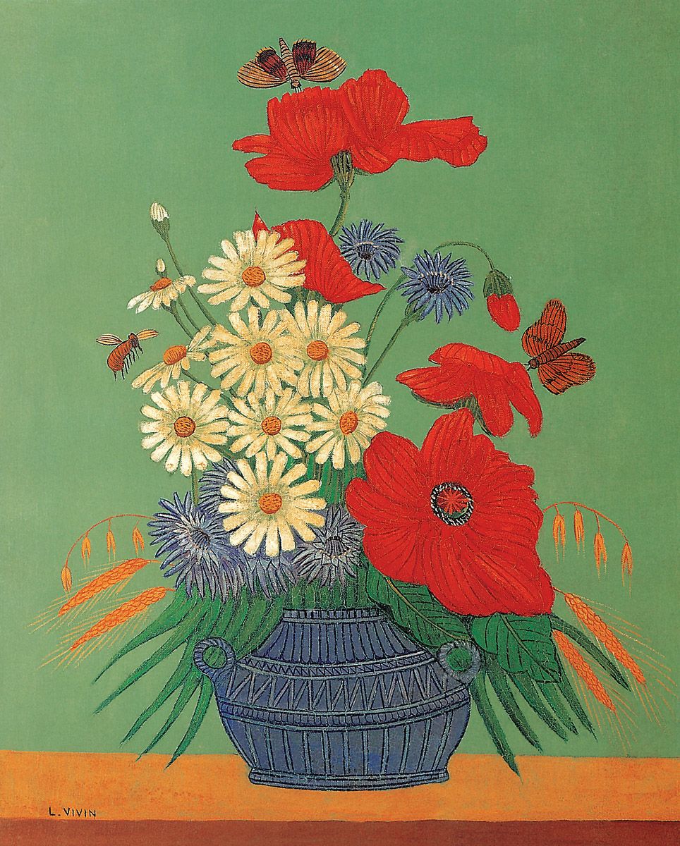 Louis Vivin, Naturaleza muerta con mariposas y flores. Óleo sobre tela, 61 x 50 cm. Museo Charlotte Zander, Bönnigheim.