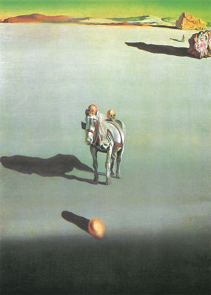 También constituye el punto central en El juego lúgubre y Placeres iluminados. Las cuatro pinturas fueron presentadas en la primera exhibición individual de Dalí en París, en la galería Goemans a finales de noviembre de 1929. El juego lúgubre fue adquirido por el vizconde de Noailles y, de todas las pinturas de este período, ganó la mayor admiración.