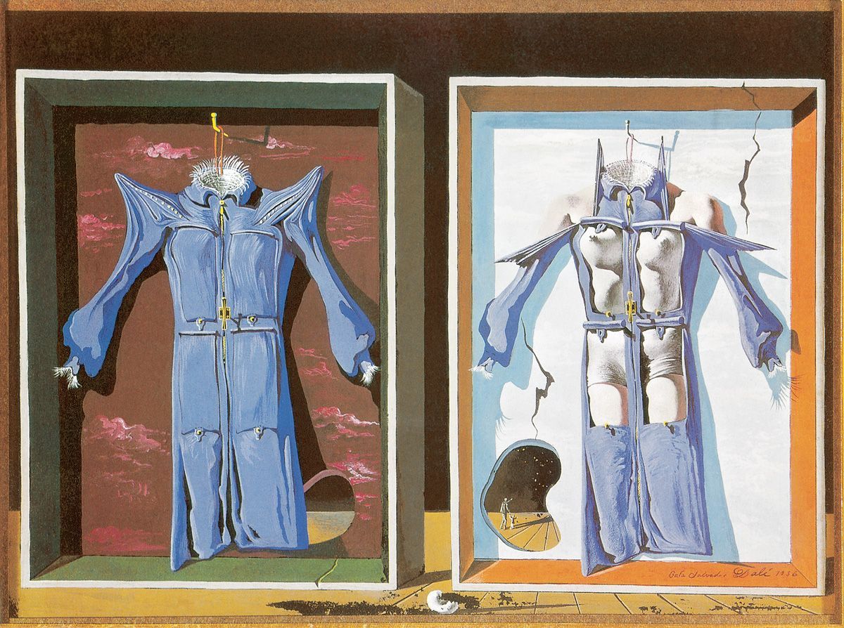 Según opinaba Dalí, la historia del tiempo no se reflejaba en las conversaciones de los surrealistas en los cafés de Montmarte, sino en la Place Vendôme, en el corazón del mundo de la moda. Dalí había hecho amistad con las diseñadoras Coco Chanel y Elsa Schiaparelli. En los diseños de Schiaparelli, Dalí veía «morfologías nuevas» que reflejaban la disolución de la sociedad en la víspera de la Segunda Guerra Mundial. La mujer de origen italiano, que abrió su salón en la Place Vendôme en 1935, sacudió al mundo de la moda con sus «impactantes» diseños en rosa chillón. Puso nuevamente de moda la espalda de hombros anchos y le encantaba usar géneros con efectos ópticos tales como esqueletos humanos o diseños de tatuajes.