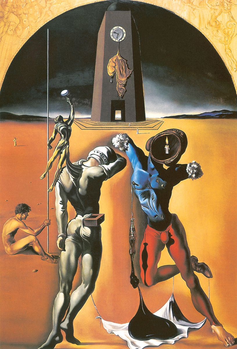 Poesía de América o Los atletas cósmicos, 1943. Óleo sobre lienzo, 116 x 79 cm. Ayuntamiento de Figueras, en depósito permanente en la Fundació Gala-Salvador Dalí, Figueras.