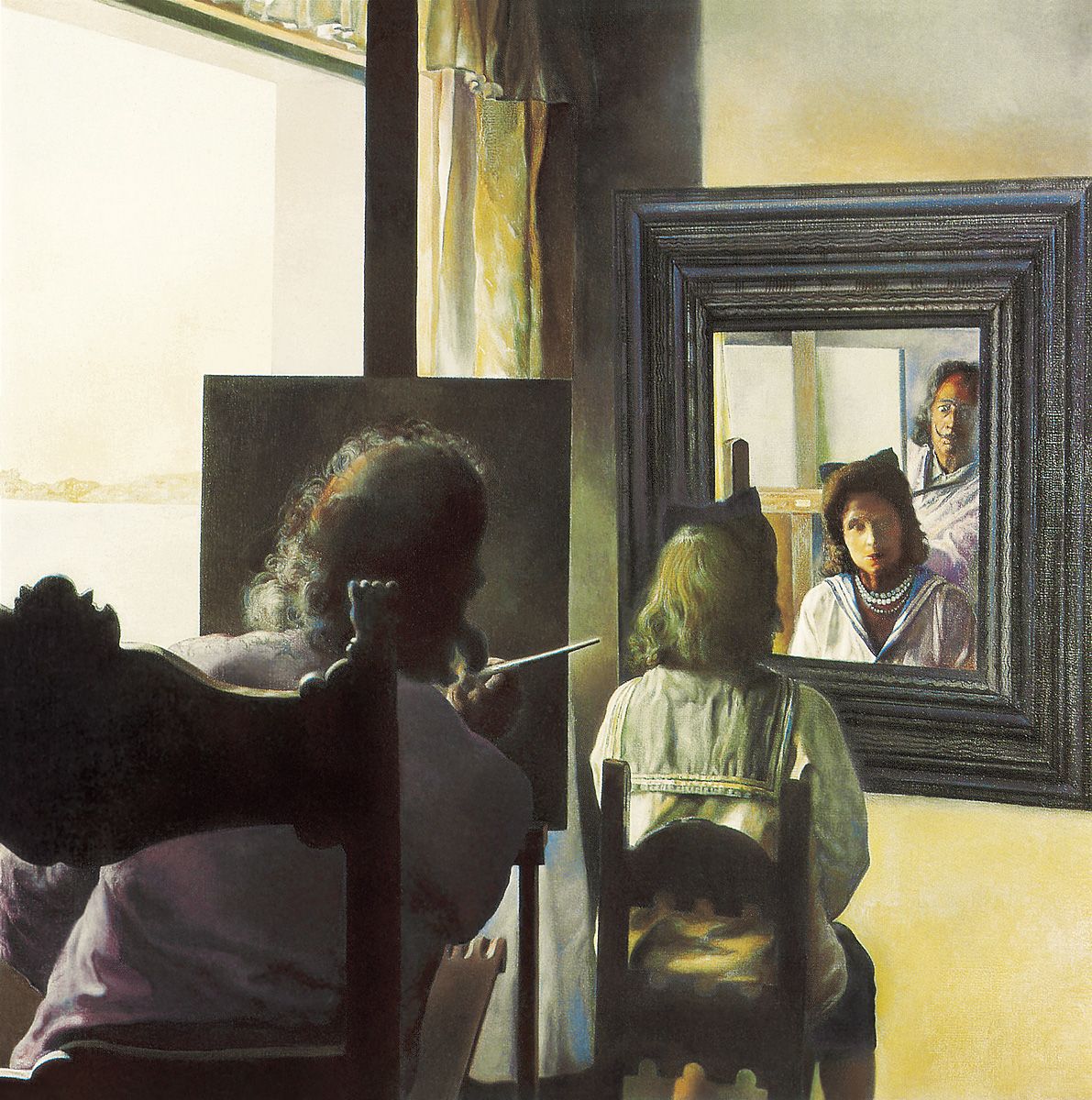 Dalí de espaldas pintando a Gala de espaldas eternizada por seis córneas virtuales provisionalmente reflejadas en seis verdaderos espejos (sin terminar), 1972-1973. Óleo sobre lienzo (obra hiperestereoscópica) 60,5 x 60,5 cm. Fundació Gala-Salvador Dalí, Figueras.