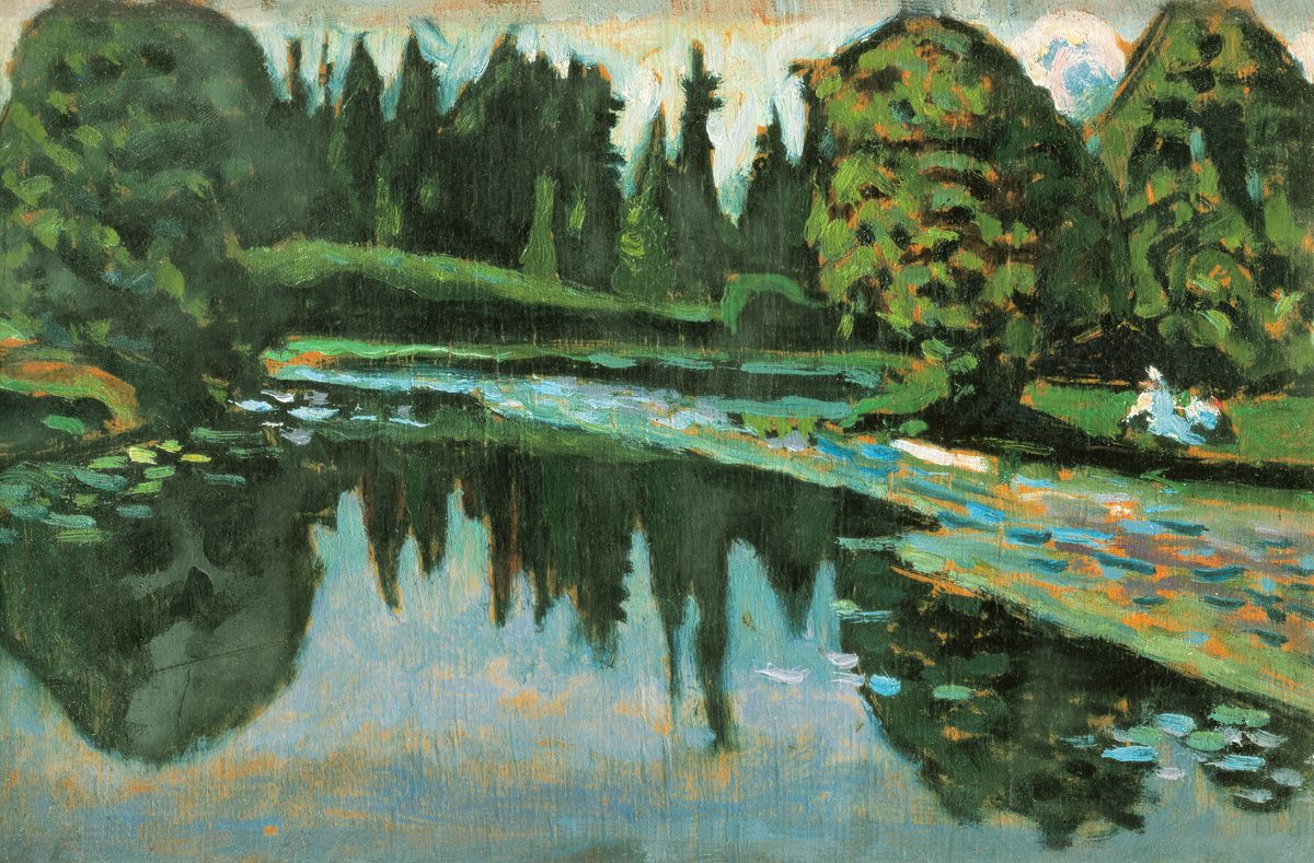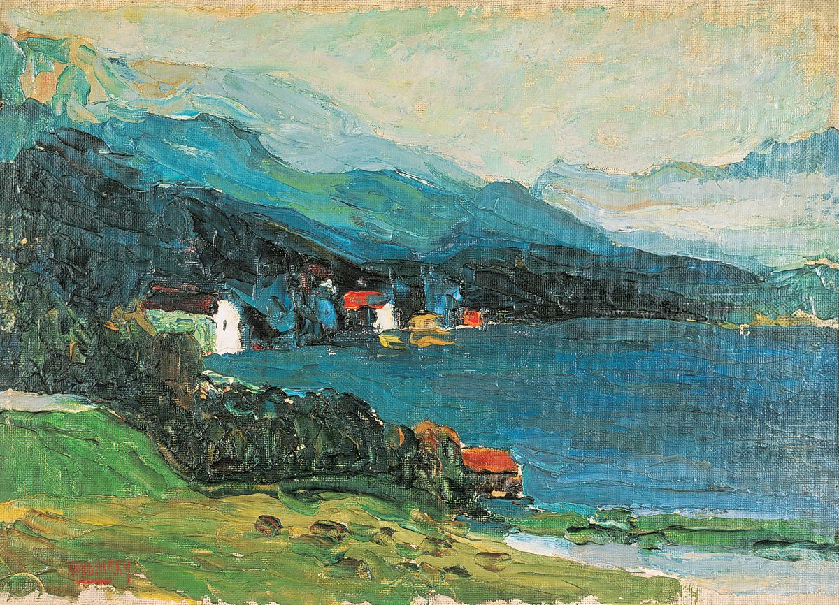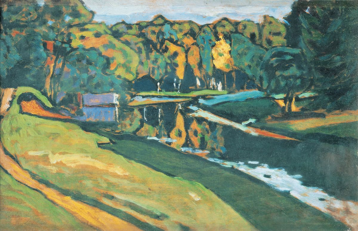 Kochel (El lago y el hotel Grauer Bär), ca. 1920. Óleo sobre cartón, 23,8 x 32,9 cm. Galería Tretyakov, Moscú.