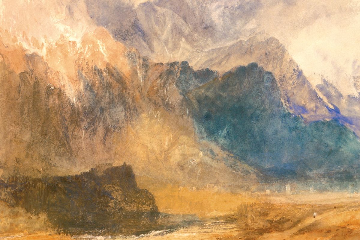 21. J.M.W. Turner, Escena en el valle de Aosta, c. 1836, acuarela, 23.7 x 29.8 cm. Museo Fitzwilliam, Cambridge.