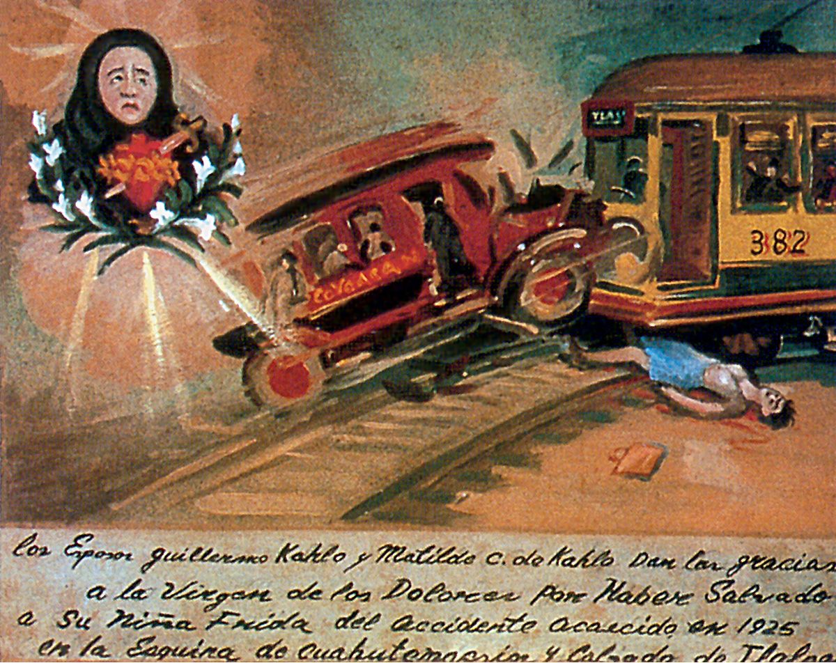 As an artist, she only visited the scene of her accident once in a pencil drawing that showed her bandaged body with the small bus and the trolley car crushed together against the corner of the market building.