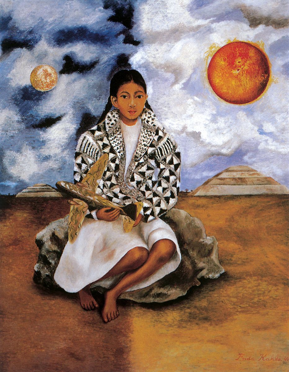 Frida Kahlo, Portrait of Lucha Maria, a girl from Tehuacán, (Sun and moon), 1942. Oil on masonite, 54.6 x 43.1 cm. Private collection.