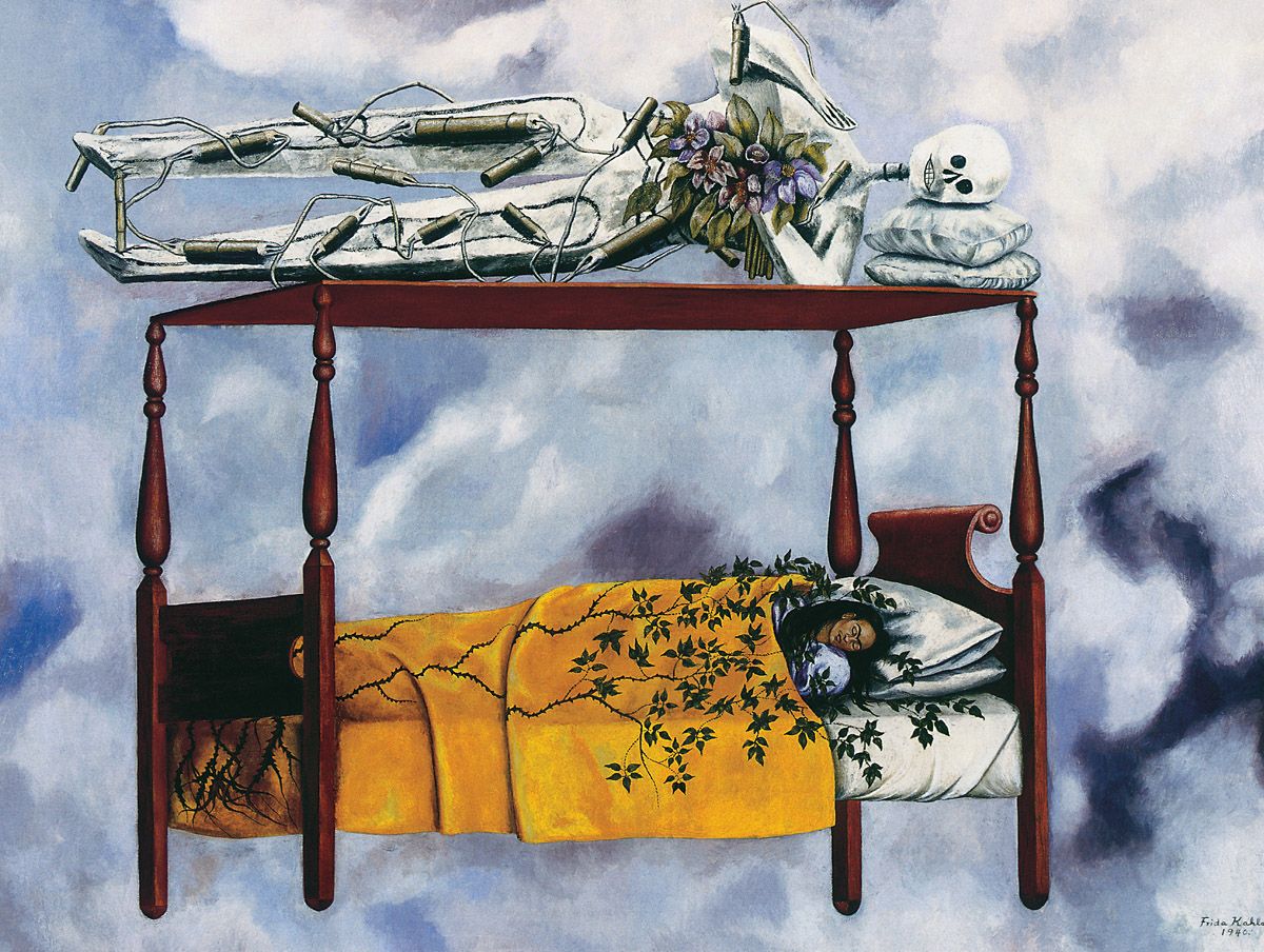 Frida Kahlo, El sueño o La cama, 1940. Óleo sobre lienzo, 74 x 98,5 cm. Colección Isidore Ducasse, Francia.