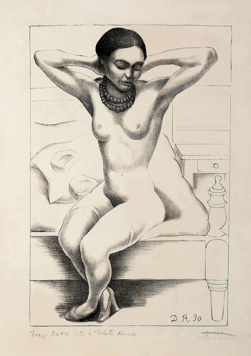 Diego Rivera, Desnudo de Frida Kahlo, 1930. Litografía, 44 x 30 cm. Museo Dolores Olmedo, Ciudad de México..