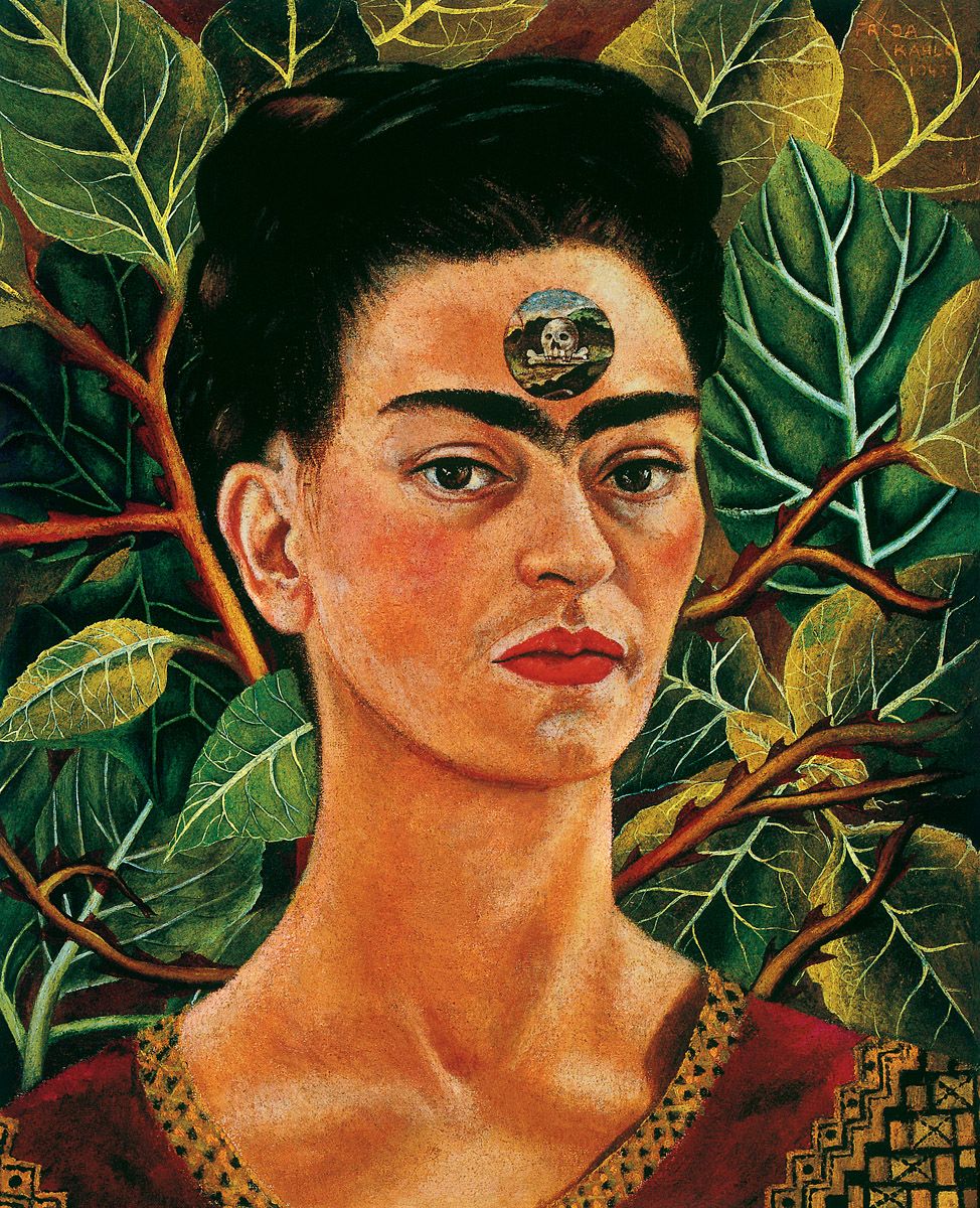 Frida Kahlo, Pensando en la muerte, 1943. Óleo sobre lienzo montado sobre aglomerado, 44,5 x 36,3 cm. Museo Dolores Olmedo, Ciudad de México.