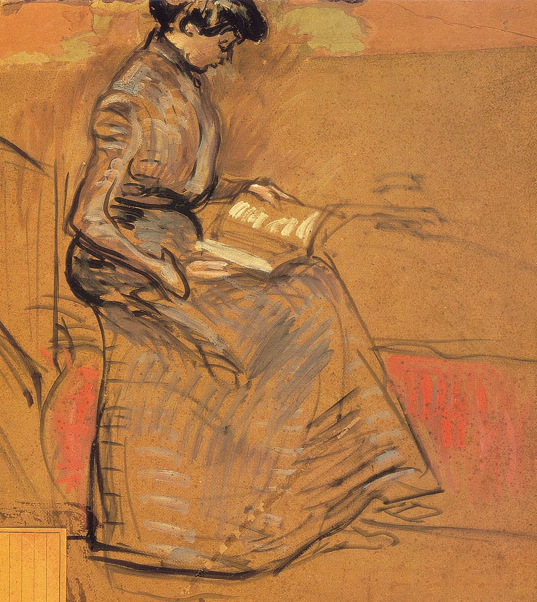 This is all the more amazing considering that, as “a flat surface covered with colours assembled in a certain order”, the picture is close to the works of the Nabis (perhaps not so much Denis himself as Vuillard and Bonnard) in its muted, modest colours, the silhouetted patches, the private, intimate atmosphere. But this unaffected exterior hides a passionate emotion, and that, of course, is neither the Nabis nor even Toulouse-Lautrec.