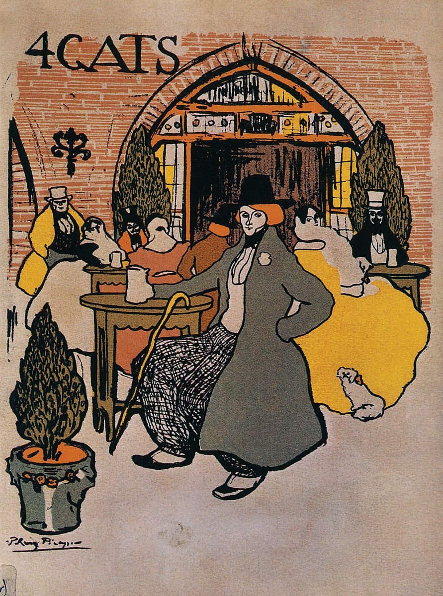 Picasso, who was not yet eighteen, had reached the point of his greatest rebelliousness; he repudiated academia’s anaemic aesthetics along with realism’s pedestrian prose and, quite naturally, joined those who called themselves modernists, that is, the non-conformist artists and writers, those whom Sabartés called “the élite of Catalan thought” and who were grouped around the artists’ café Els Quatre Gats.