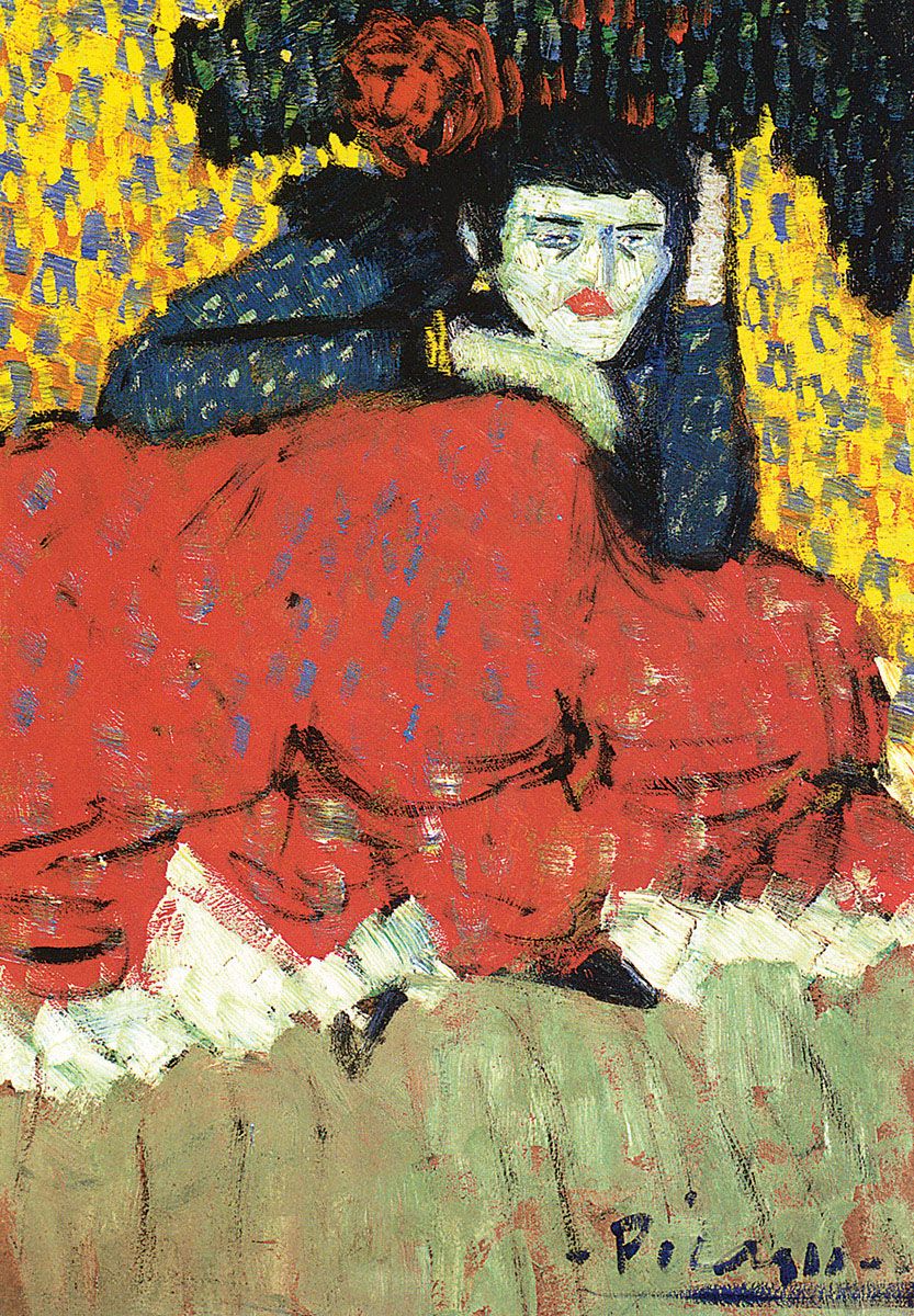 He used the Impressionist freedom of sinuous brushstrokes, the Japanese precision of Degas’s compositions and Toulouse-Lautrec’s posters, the heightened, exalted vividness of Van Gogh’s colours, heralding the coming of Fauvism, which manifested itself fully only in 1905. But Picasso’s so-called pre-Fauvism of the spring of 1901 was, once again, of a purely aesthetic, rather than of a subjective, psychological nature.