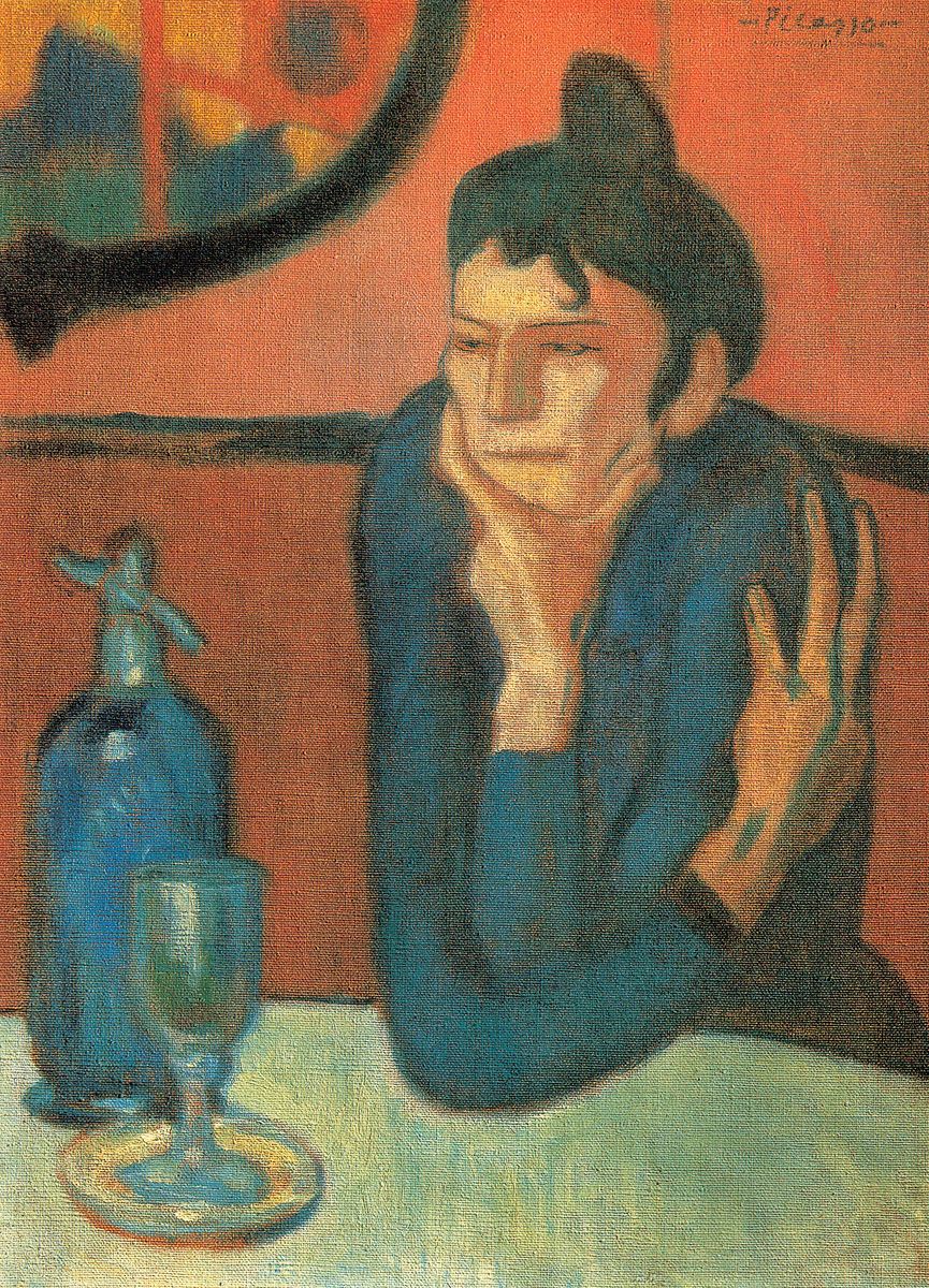 Durante este período, a Picasso le preocupaba la idea del poeta o artista maldito. Coincidía con su ideal de arte auténtico, con París, con lo contemporáneo, con su propia vida. Baudelaire, Verlaine, Rimbaud, Gauguin, Van Gogh, Toulouse-Lautrec eran todos malditos, algo inseparable de la vida bohemia y del alcohol. Picasso, una vez realizada esta pintura, tropezó con la idea del alcohol, primero como medio para reemplazar la banalidad del entorno de todos los días con uno diferente, interno y espiritual; segundo como imitación, en su calidad de ardiente, del arte y de la poesía de los artistas malditos (Apollinaire, quien tenía un vínculo espiritual con Picasso, tituló su primer libro de poemas, publicado en 1913, Alcools [Alcoholes]), y tercero como un elixir de sabiduría, pero también de melancolía mortal.
