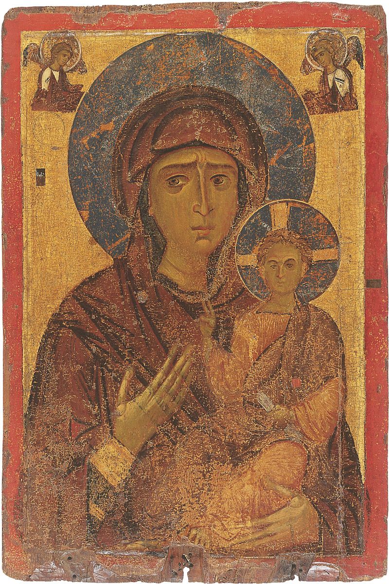 Mi extenso estudio de la iconografía de Nuestra Señora en Bizancio, en Europa del Este y en Rusia, me llevó a descubrir que muchos antiguos y maravillosos íconos de la Virgen, muy apreciados y reverenciados por los rusos, tienen sus modelos y prototipos en íconos greco-italianos de los siglos XIV y XV[12]. Su estilo característico fue muy notorio en los frescos del siglo XV y se convirtió en el modelo de las pinturas de Suzdal y Novgorod, para luego cubrir todo el país. No obstante, su influencia fue menor en la escuela de íconos de Novgorod, que muy pronto perdió su manera y refinamiento bizantinos. Este estilo recibió el honroso nombre de “griego”, opuesto al estilo “franco”, una mezcla del griego tardío con el arte occidental. Este rasgo de influjo extranjero, que animó la decadencia del esquema bizantino y satisfizo las solicitudes espirituales de la nación, se desenvolvió tan claramente por todo el dominio de la pintura de íconos rusos que fue justo el sendero esperado para llevar a Rusia a su terra incognita. Y hace las veces de hito histórico concreto que nos permite, más o menos, tomar postura y, lo mejor de todo, alejarnos del dominio del ipse dixit que apunta tanto al barbarismo como a la crítica estética superficial[13]. El moderno esteticismo en Rusia, proveniente de periodistas y dilettanti, se precipitó en declarar a los íconos rusos de “gran arte”, descubrimiento que sorprendería a Europa al reclamar un lugar como “nuevo tesoro mundial”[14]. De acuerdo con estos comentaristas, los íconos rusos pueden sin duda repetir la composición bizantina, pero salvan su “creatividad” por su reproducción artística: el ícono tiene un “estilo” ausente del arte italiano de la misma época, por lo que cae en la categoría de “arte provin-ciano”. Según ellos, el papel desempeñado por las guías iconográficas con modelos para la pintura de íconos es mucho más exagerado, pues el período brillante comprendido entre los siglos XIV al XVI no tuvo patrones para calcar ni siquiera arquetipos extranjeros. El estilo de los íconos rusos se supone desprovisto de expresión y narración, desligado de la vida y de la realidad, “arte puro”. Sus tipos son en sí nacionales, y aunque la figura rusa de Cristo es la de un extranjero, contiene “un alma rusa”. El ícono ruso se distingue por ser “aristocrático”; su idealismo es “inamovible” y “abierto a la contemplación del milagro”. Todo en un ícono es ideal: aun sus edificios y montañas ofrecen un “mundo imaginario” con categorías “imponderables”, “confinado en su idealismo”. La adoración del arte sagrado de los íconos siempre ha tenido un fuerte asidero en Rusia, y apunta más a Oriente que a Occidente. En este arte, la línea y el diseño están regulados por la tradición; la selección y mezcla de sus colores pertenecen al individuo; de acuerdo con sus prescripciones especiales, se distinguen las diferentes escuelas. El color brillante de los íconos rusos y la llamativa belleza de su combinación de sombras son su mayor fortaleza.
