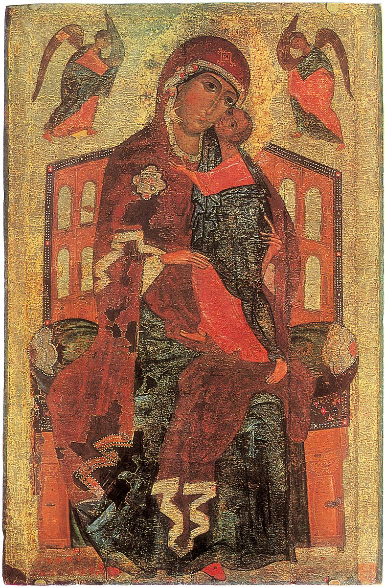Entre las artes gráficas figurativas, el ícono ocupó el lugar más destacado en la vida rusa. Aparte de la primera pintura al fresco de Novgorod, el ícono llegará a ser la expresión capital del pensamiento religioso y del sentimiento popular desde comienzos del siglo XIV; más tarde, cuando la pintura al fresco se le subordinaría, el ícono se convirtió en el símbolo único de la fe. En vista de este especial significado y de que proviene del mejor modelo bizantino, el ícono ruso fue la continuación de una alta tradición del arte, cuyo desarrollo ofrece un caso único de destreza artística. Por sus cualidades decorativas, su singularidad y severidad, el carácter ideal y la profundidad espiritual del pensamiento religioso que expresa, el ícono puede compararse con las primeras manifestaciones del arte religioso en Europa occidental. Por lo demás, el historiador del arte debe tener presente que el caballete surgió en el curso del tiempo por fuera del ícono y debe esforzarse por esclarecer el tipo de arte representado en el ícono ruso para comprender las tradiciones artísticas que subyacen a la pintura y que, hasta nuestros días, forman parte de él. Finalmente, el ícono ruso siguió existiendo por mucho tiempo, desde comienzos del siglo XVIII hasta nuestros días, como una artesanía o un producto kustar[1]. Y aunque bien merece la atención de los historiadores del arte, su estudio ha sido evitado, pues las artesanías artísticas presentan mayores dificultades y problemas más complicados al momento de una interpretación histórica. A la arqueología rusa le llegó el momento de estudiar la pintura de íconos y rastrear cinco siglos de historia de un fenómeno artístico peculiar. Dos siglos de abandono, iniciados en la época de Pedro, escindieron al pueblo ruso desde el último período de florecimiento de la pintura de íconos y destruyeron un gran número de ejemplos con todos los incendios y devastaciones ocurridos en la campiña de Moscovia. Por algunos inventarios, se sabe con exactitud cuán ricas solían ser en íconos las catedrales, monasterios y casas privadas rusas y en qué grado los moscovitas reverenciaron esas antiguas y santificadas imágenes. Más aún, puede hacerse un seguimiento de cómo esos antiguos íconos han venido desapareciendo en masa de las iglesias rusas desde el siglo XVIII. A principios del siglo XIX, esas iglesias estaban todavía repletas de antiguos ornamentos religiosos. De las paredes de los monasterios colgaban íconos festivos y de devoción, y las capillas exteriores rebosaban de paneles con santos. Como la gente dejó de cuidarlos, los olvidó y no volvió ni siquiera a mirarlos (pese a que requerían de permanentes restauraciones), terminaron almacenados y abandonados a su masiva destrucción. Fue frente a su desaparición que surgieron imitaciones de toda suerte con trabajos ordinarios en hojalata, podubornoe[2], madera y papel.