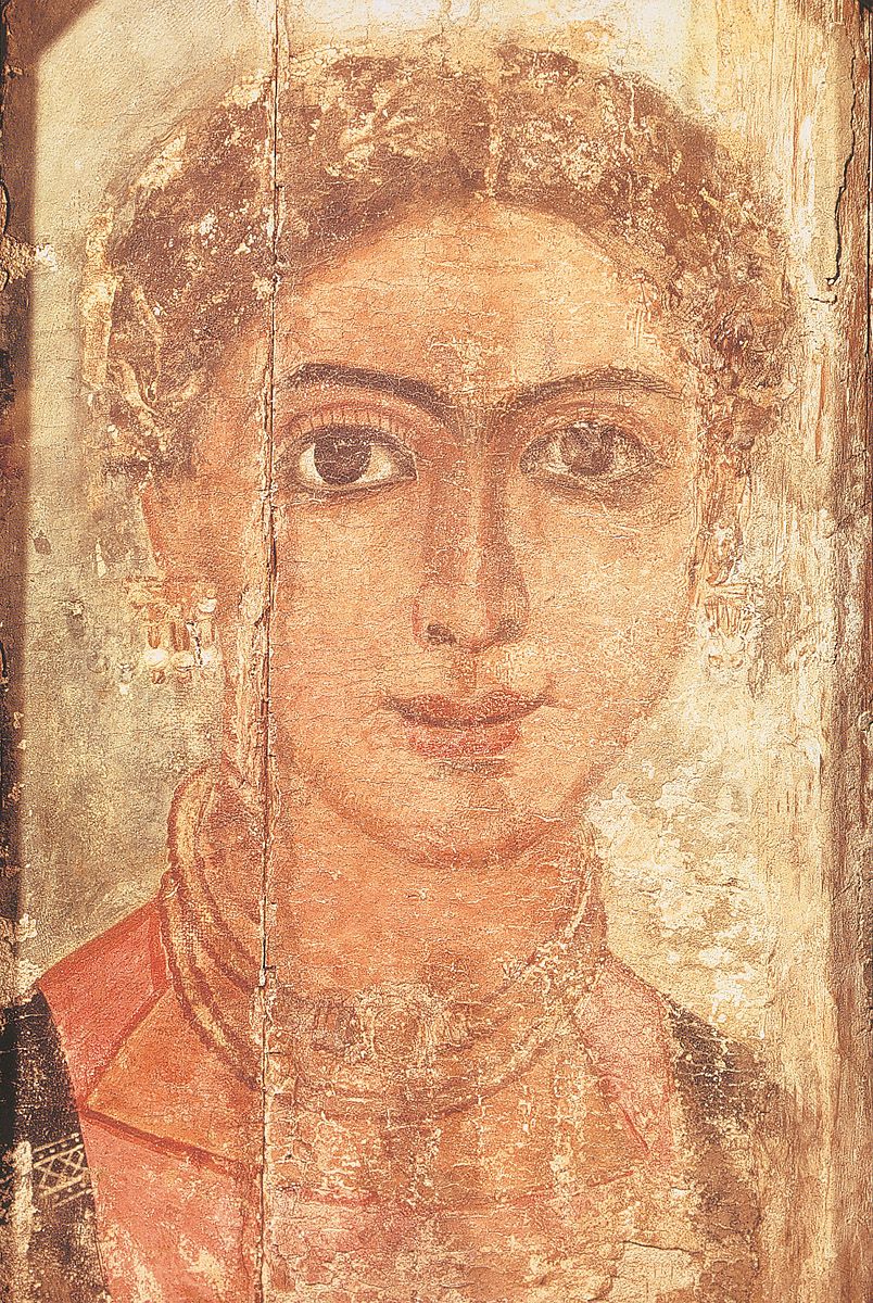 Cementerios con este tipo de momias han sido excavados en las orillas arenosas de antiguos lagos hoy desecados en El-Fayum y Antinoe, entre otros, al suroeste de El Cairo en Egipto, dando lugar a toda una serie de retratos realistas muy vivaces y expresivos, pintados a la encáustica, esto es, pigmentos disueltos en cera caliente, aplicados con espátula. En estos rostros realistas se aprecia una técnica altamente desarrollada y una ejecución de una sola jornada. Los rasgos son indudablemente individuales, los colores ricos y brillantes, y aunque el toque de los rizos luce seco, está lleno de carácter. Alrededor del cuello de las damas, finas cadenas de oro con amuletos. Pintados de prisa, estos retratos exhiben toques de cera coloreada que no fue mezclada a fondo. Todos ellos tienen una manera típica común: la tendencia a que el rostro luzca joven, al omitir las huellas de la edad e incluso la madurez. Un gran énfasis fue puesto al pintar los ojos, para dar la impresión de vida[18].