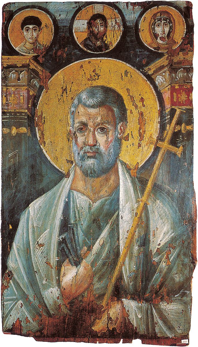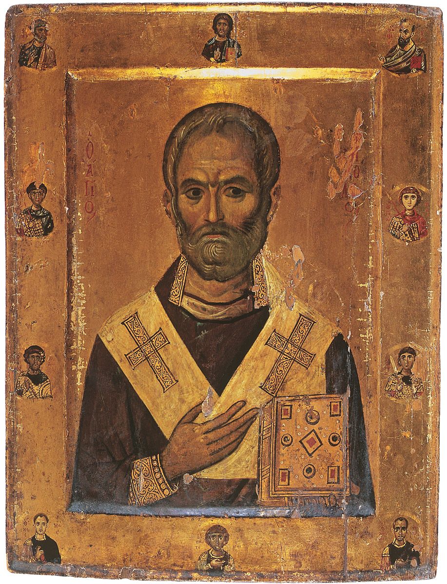 12. Busto de San Nicolás rodeado por otros santos, siglos X a XI. Monasterio de Santa Catalina, Monte Sinaí, Egipto