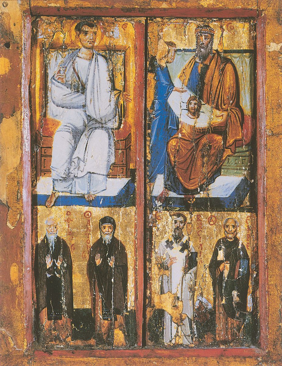 22. El rey Agbar recibe el Mandylion con algunos santos, siglo XI. Monasterio de Santa Catalina, Monte Sinaí, Egipto