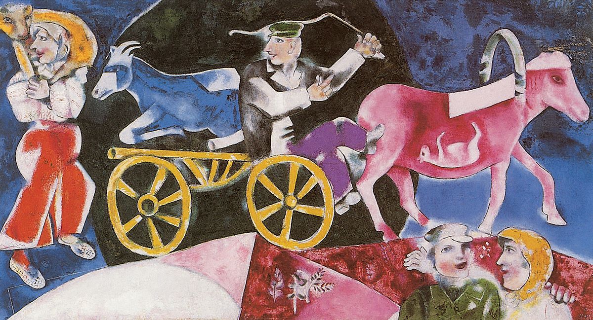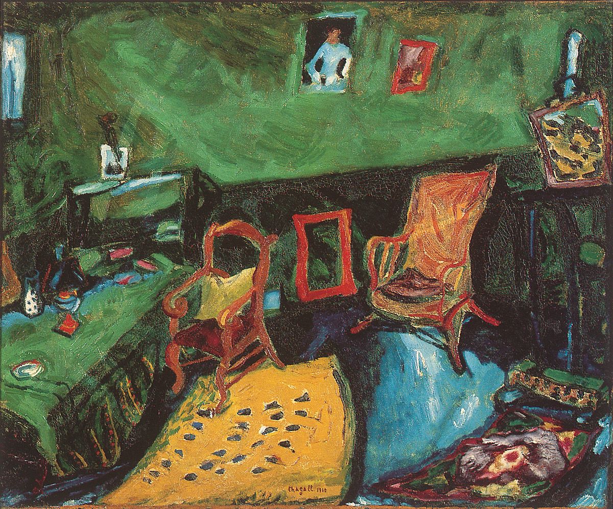 Desde 1909, Chagall se preocupó por el principal interrogante de la creatividad, el estatus mismo de la pintura que la práctica le impuso. ¿Era la pintura solamente la réplica ilusionista del mundo material? Por el contrario, ¿no debería ser el modo privilegiado de explorar más allá de las apariencias que conforman la realidad susceptible?