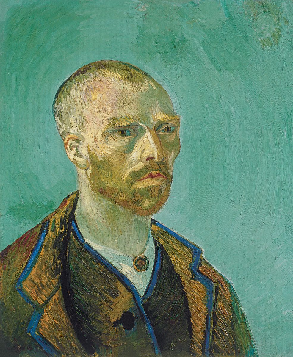 1. Autorretrato (dedicado a Paul Gauguin), Arlés, septiembre de 1888. Óleo sobre lienzo, 61 x 50 cm. Museo de Arte Fogg, Universidad de Harvard, Cambridge, Massachussetts.
