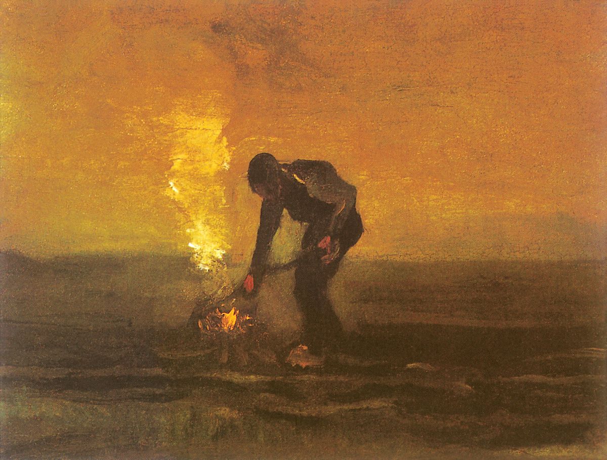 5. Campesino quemando maleza, Drente, octubre de 1883. Óleo sobre madera, 30,5 x 39,5 cm. Colección privada.