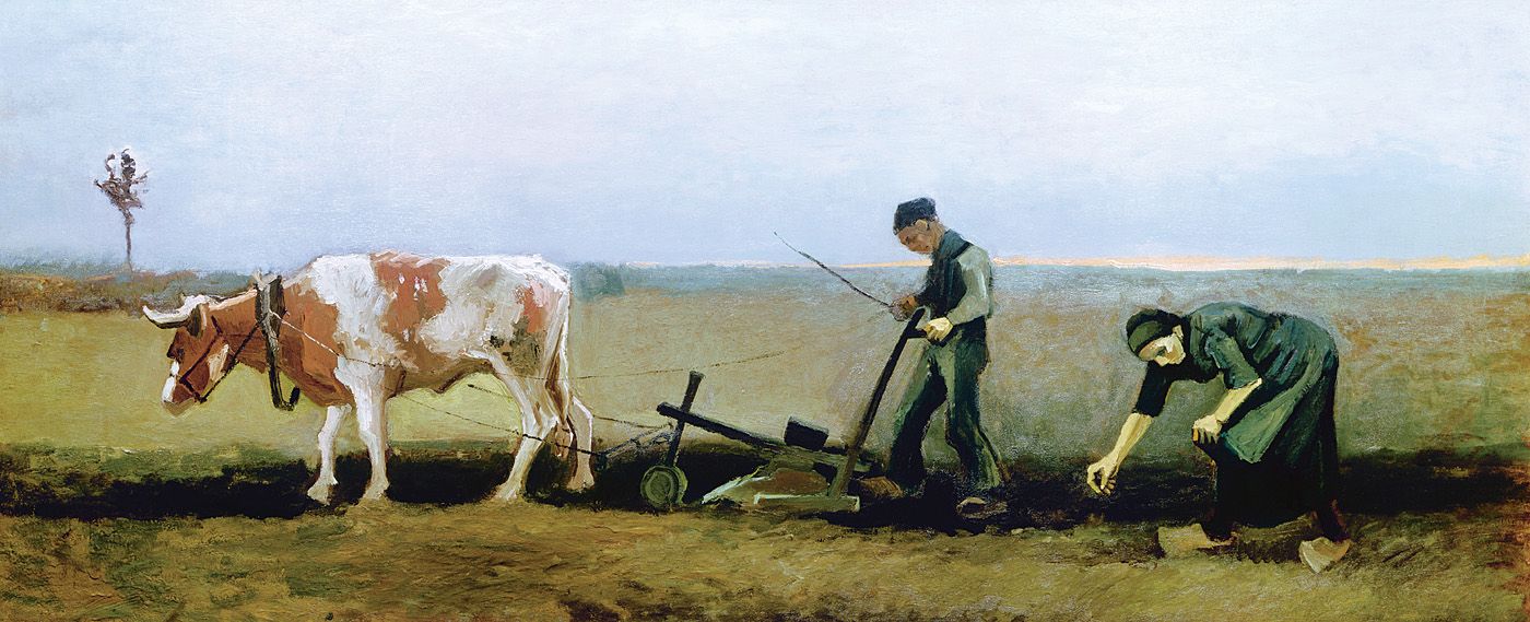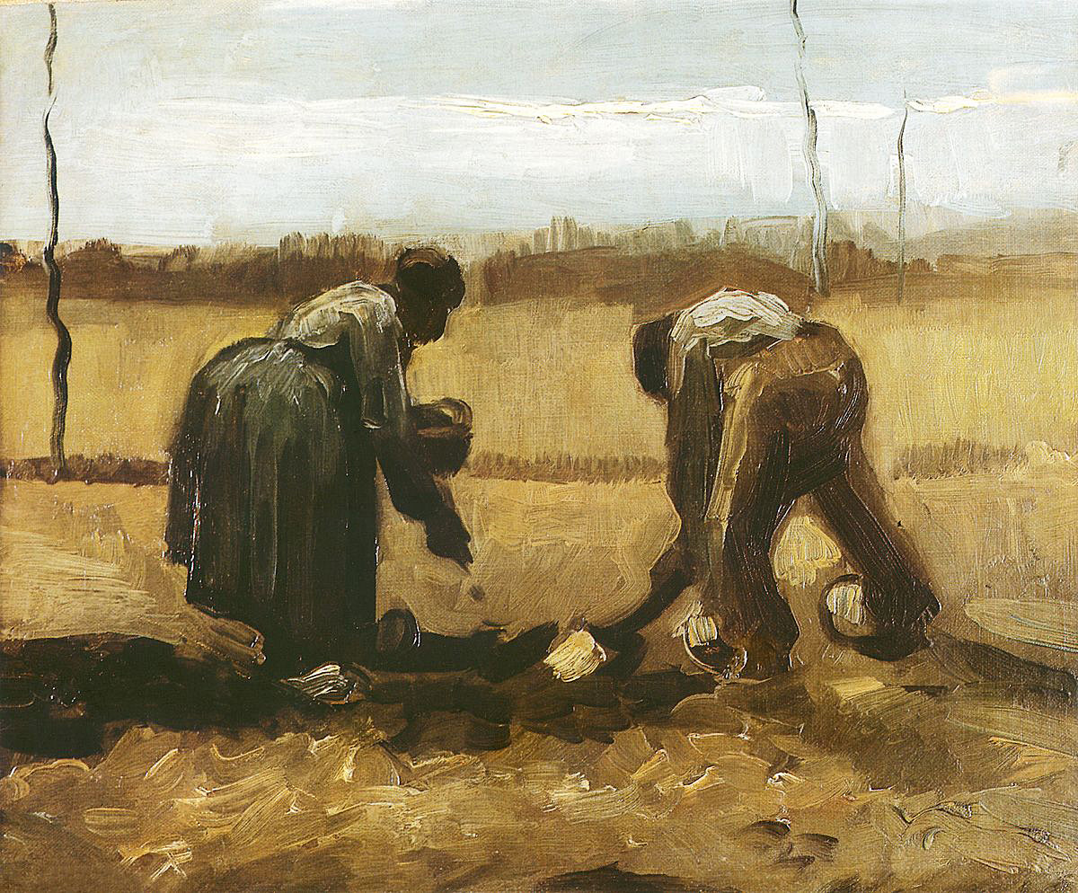 8. Campesinos plantando patatas, Neunen, abril de 1885. Óleo sobre lienzo, 33 x 41 cm. Museo de Arte, Zurich.