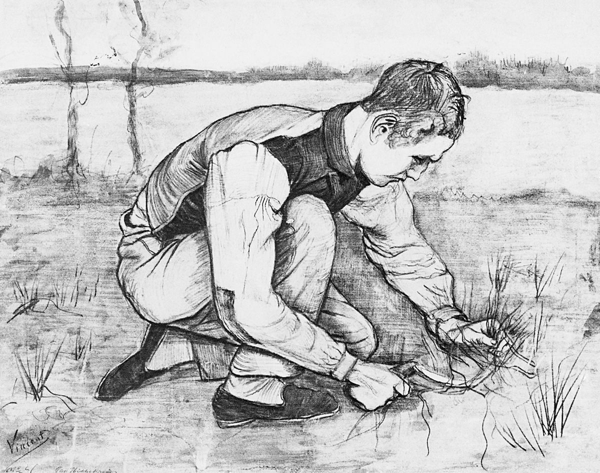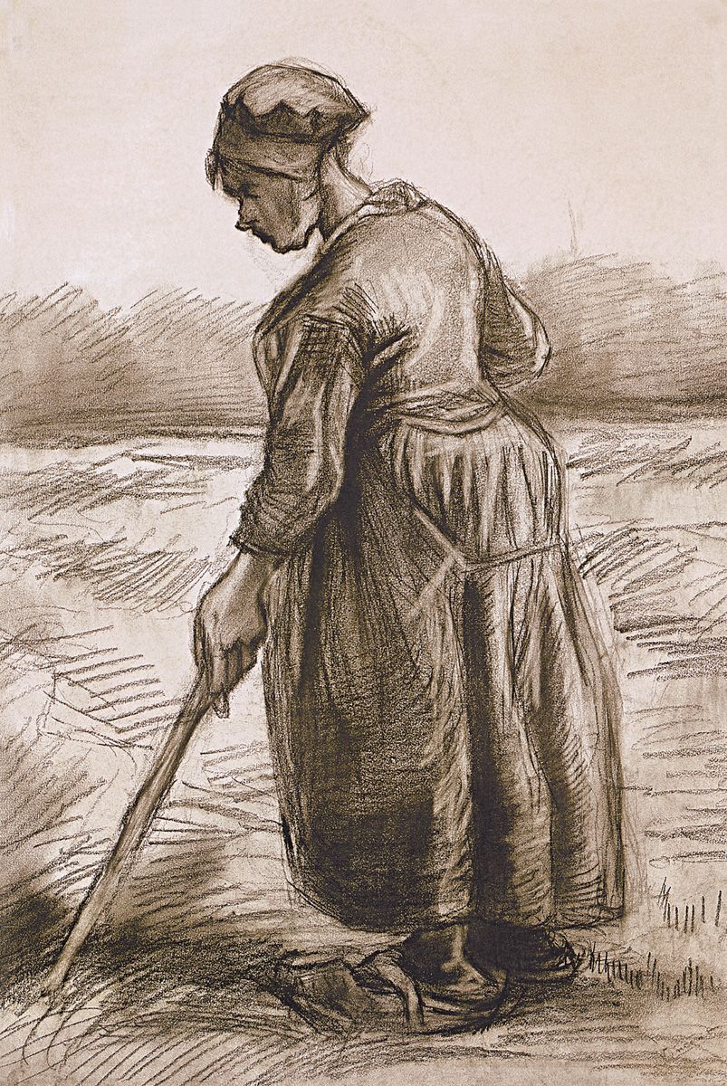 10. Mujer trabajando, Neunen, agosto de 1885. Carboncillo y esfumino, 54,5 x 37 cm. Museo Kröller-Müller, Otterlo.