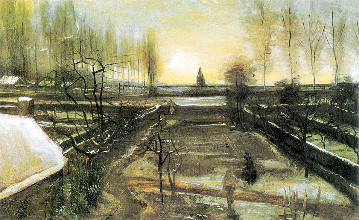 39. Jardín parroquial de Neunen con nieve, Neunen, enero de 1885. Óleo sobre lienzo, 53 x 78 cm. Museo de Arte Armand Hammer, Los Ángeles.