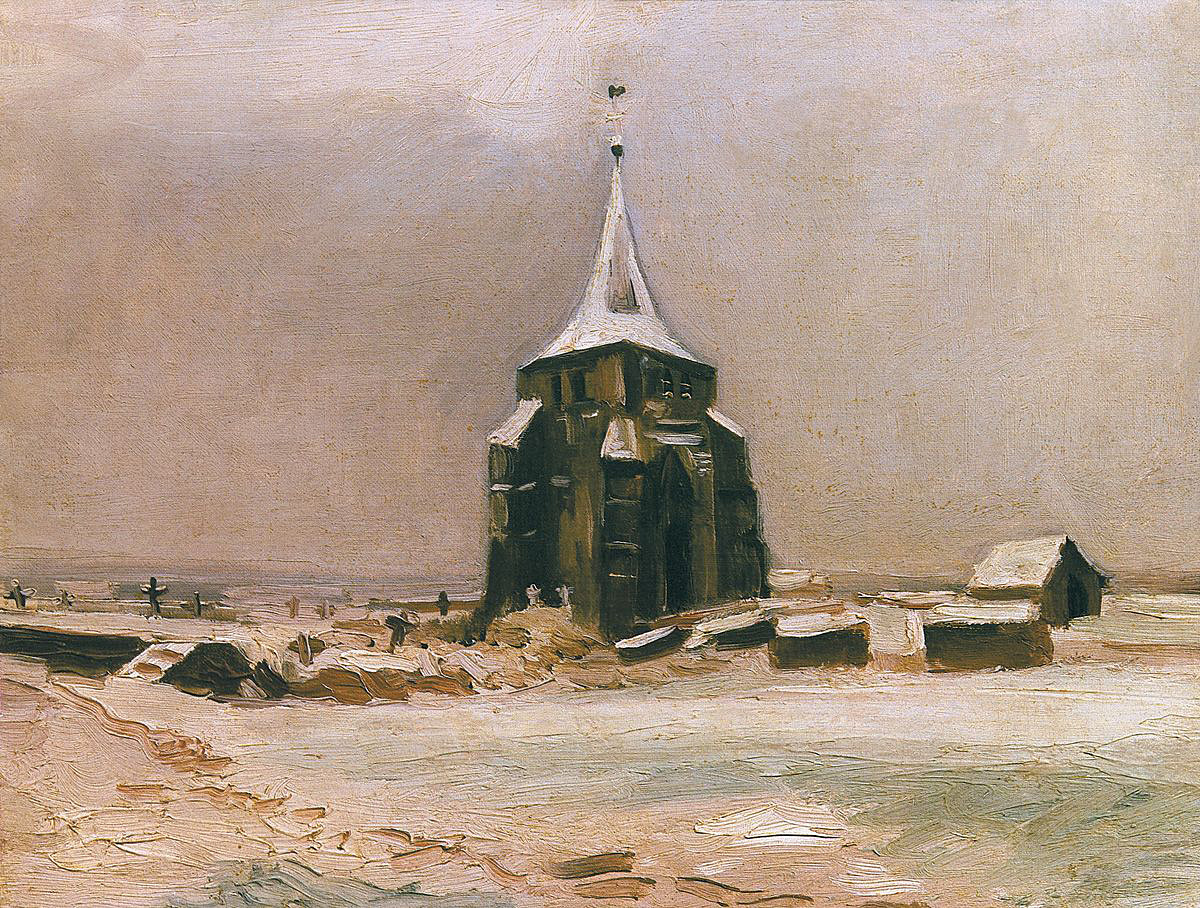 41. Torre del cementerio de Neunen, Neunen, enero de 1885. Óleo sobre lienzo, 30 x 41,5 cm. Colección Stavros S. Niarchos, Londres.