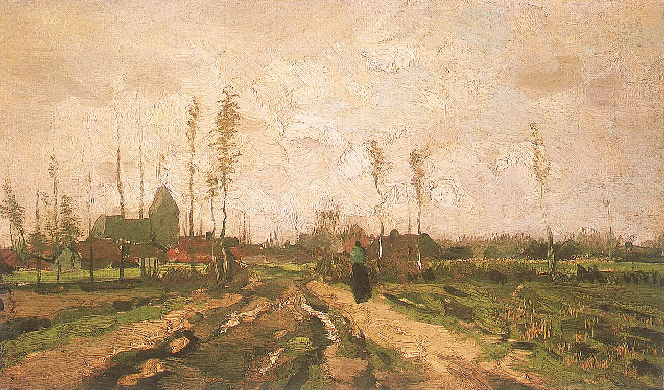 42. Paisaje con iglesia, Neunen, abril de 1885. Óleo sobre lienzo, 22 x 37 cm. Museo de Arte del Condado de Los Ángeles, Los Ángeles.