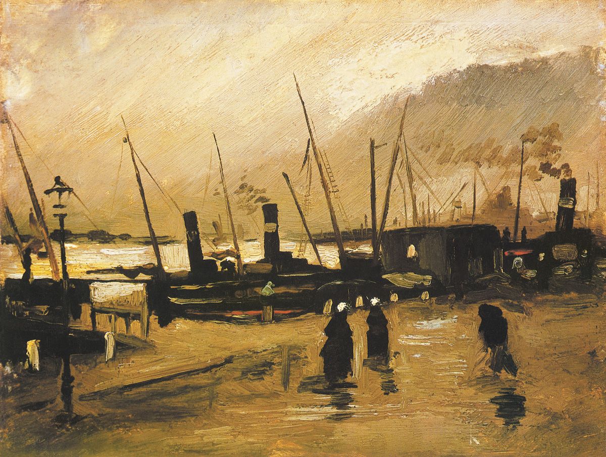 44. Muelle de Amberes, Amberes, diciembre de 1885. Óleo sobre madera, 20,5 x 27 cm. Museo Van Gogh, Ámsterdam.