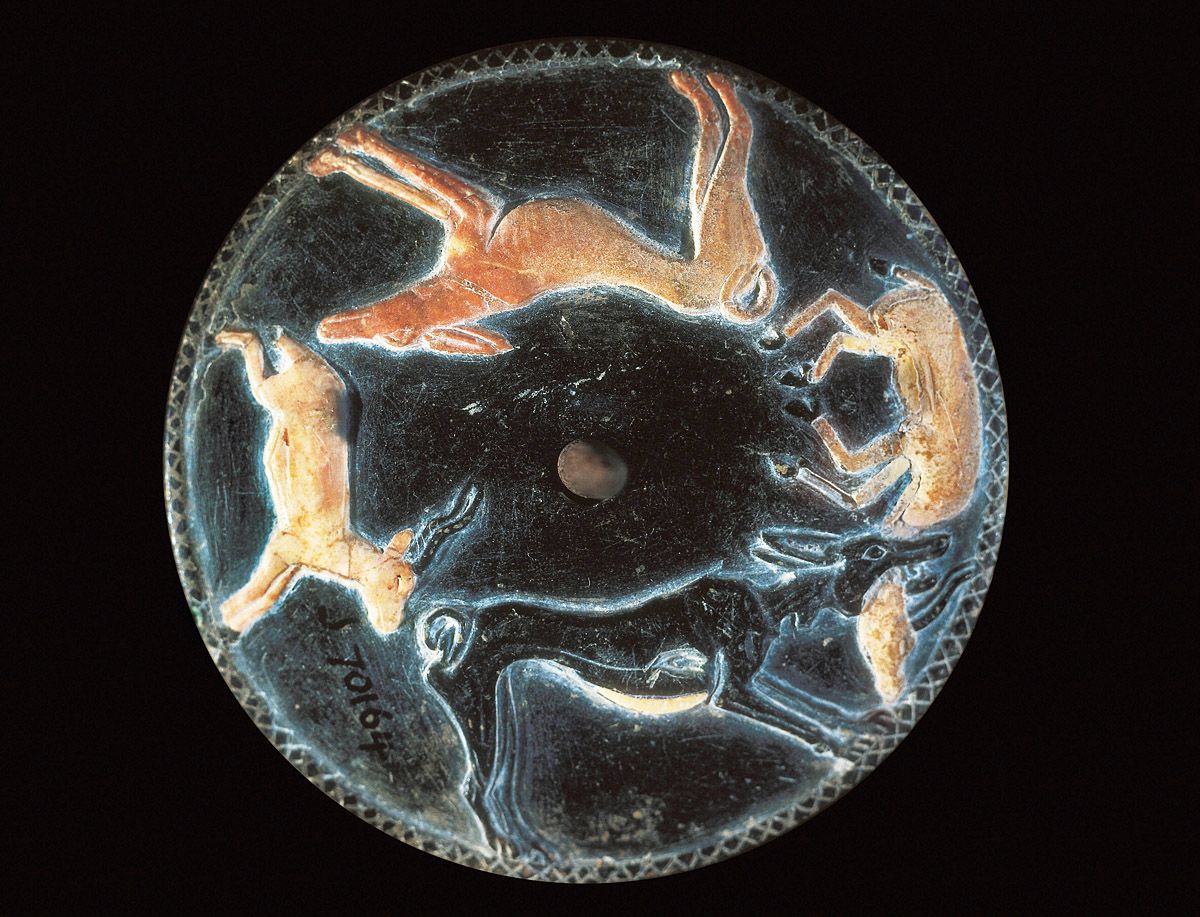Perro persiguiendo una gacela. Siglos XXXIII-XXXI a. de C. Museo egipcio de El Cairo, Egipto. (©Aisa/Leemage)
