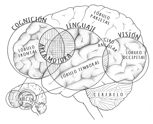 Imagina que estás en un trapecio circular de madera, en lo alto de una enorme carpa de circo, contemplando la escena que tienes a tus pies. Desde esa posición estratégica, la formación del circuito lector recuerda mucho a lo que sucede en las distintas actuaciones de un circo de tres pistas. Sin embargo, en nuestro circo de lectura habrá cinco pistas con conjuntos de intérpretes fantásticamente engalanados, listos para representar todo el abanico de procesos necesarios para que podamos leer una sola palabra. Afortunadamente para nosotros, por decisión propia, por ahora sólo vemos lo que sucede en el hemisferio izquierdo y, lo que es más importante, a cámara lenta, de modo que puedas apreciar todo lo que sucede sin sentirte mareado por las velocidades casi automáticas involucradas.