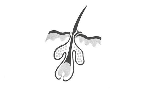 La piel se presenta de dos formas distintas: con pelo y sin él. La piel sin pelo se denomina lampiña, y no es demasiado abundante. Las únicas partes de nuestro cuerpo realmente desprovistas de pelo son los labios, los pezones y los genitales, además de las palmas de las manos y las plantas de los pies. El resto del cuerpo está cubierto, o bien de pelo visible, el llamado vello terminal, como en la cabeza, o bien del denominado vello corporal, que es el que da esa textura aterciopelada que encontramos, por ejemplo, en la mejilla de un niño. En realidad, somos tan peludos como nuestros primos los simios: lo que ocurre es que nuestro pelo es mucho más fino y tenue.23 En total, se calcula que tenemos cinco millones de pelos, pero el número varía con la edad y las circunstancias, y en cualquier caso se trata solo de una estimación.24