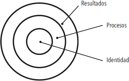 FIGURA 3. El cambio de conducta está formado por tres capas o niveles: un cambio en tus resultados, uno en tus procesos y uno en tu identidad.