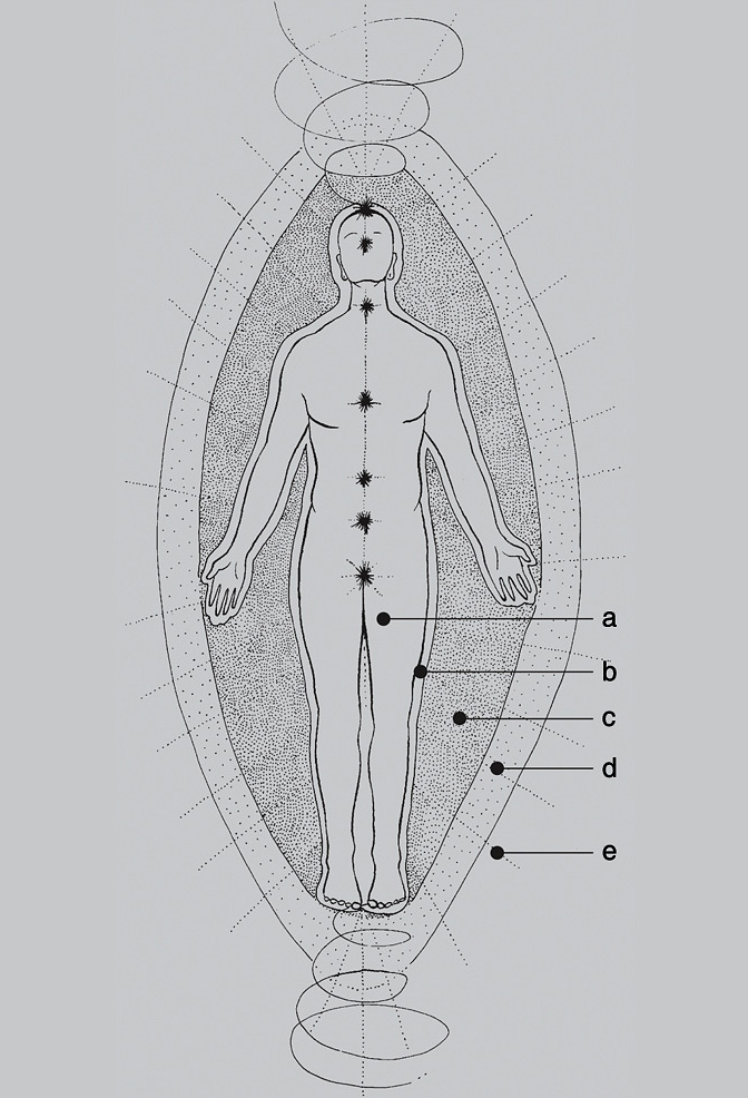 En la Antigüedad, los egipcios se dedicaron al estudio de los cuerpos sutiles del hombre, contenidos uno dentro del otro —como si de muñecas rusas se tratase— de forma cada vez más sutil. Hasta el punto de que, conscientes de la supervivencia de los elementos sutiles en la materia, dispusieron un complejo arte funerario en el que lo más importante era el acto del embalsamamiento. Como después demostraron las minuciosas clasificaciones de la escuela teosófica, los egipcios distinguían el cuerpo físico (Khat) de su sombra (Kha), a los que añadían el alma (Ba), el intelecto (Khu) y el corazón (Ab). De forma similar, el pensamiento tántrico, además del físico, reconocía un cuerpo etérico, uno astral, uno mental y otro espiritual.