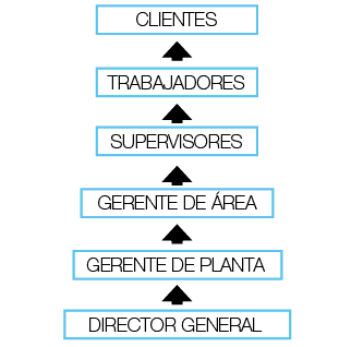 Está muy separada la jerarquía de la toma de decisiones de la jerarquía de ejecución; las decisiones son lentas porque tienen que pasar por muchos niveles jerárquicos y porque la interacción entre los distintos departamentos es compleja.