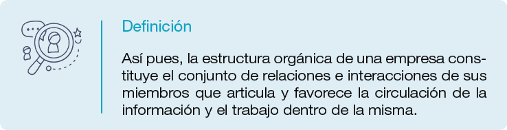 La estructura organizativa, como ya ha podido verse, es aquella distribución de recursos que se adecua a la estrategia, los procesos y la cultura de la compañía.