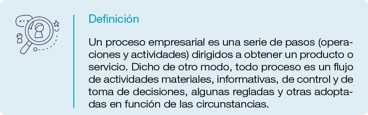 Los procesos empresariales no tienen por qué quedar limitados a procedimientos normalizados, máxime teniendo en cuenta la realidad actual del entorno empresarial marcado por la adaptación continua a las necesidades del mercado y a la aceleración de la evolución tecnológica. Lo que sí son, en su mayoría, es interfuncionales y cubren los espacios en blanco entre las casillas del organigrama. También pueden ser considerados como una cadena de valor, en la que cada una de sus fases o pasos se justifica porque añade valor al paso precedente.