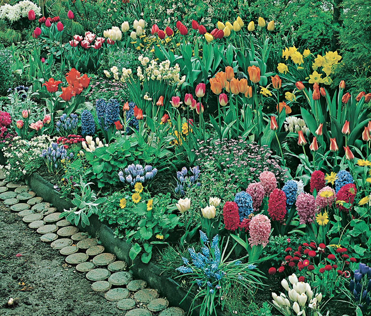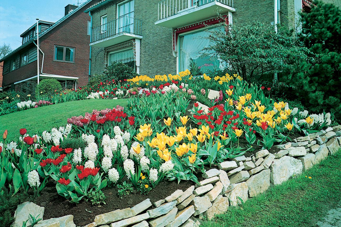 Un parterre elevado de tulipanes y almizcleñas. Fotografías de ©Maxi Media Italia - 2000