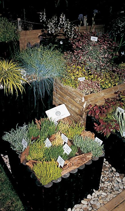 Arbustos perennifolios de colores vivos Brassica (coles ornamentales) Erica (especies leñosas) Polyanthus Viola |