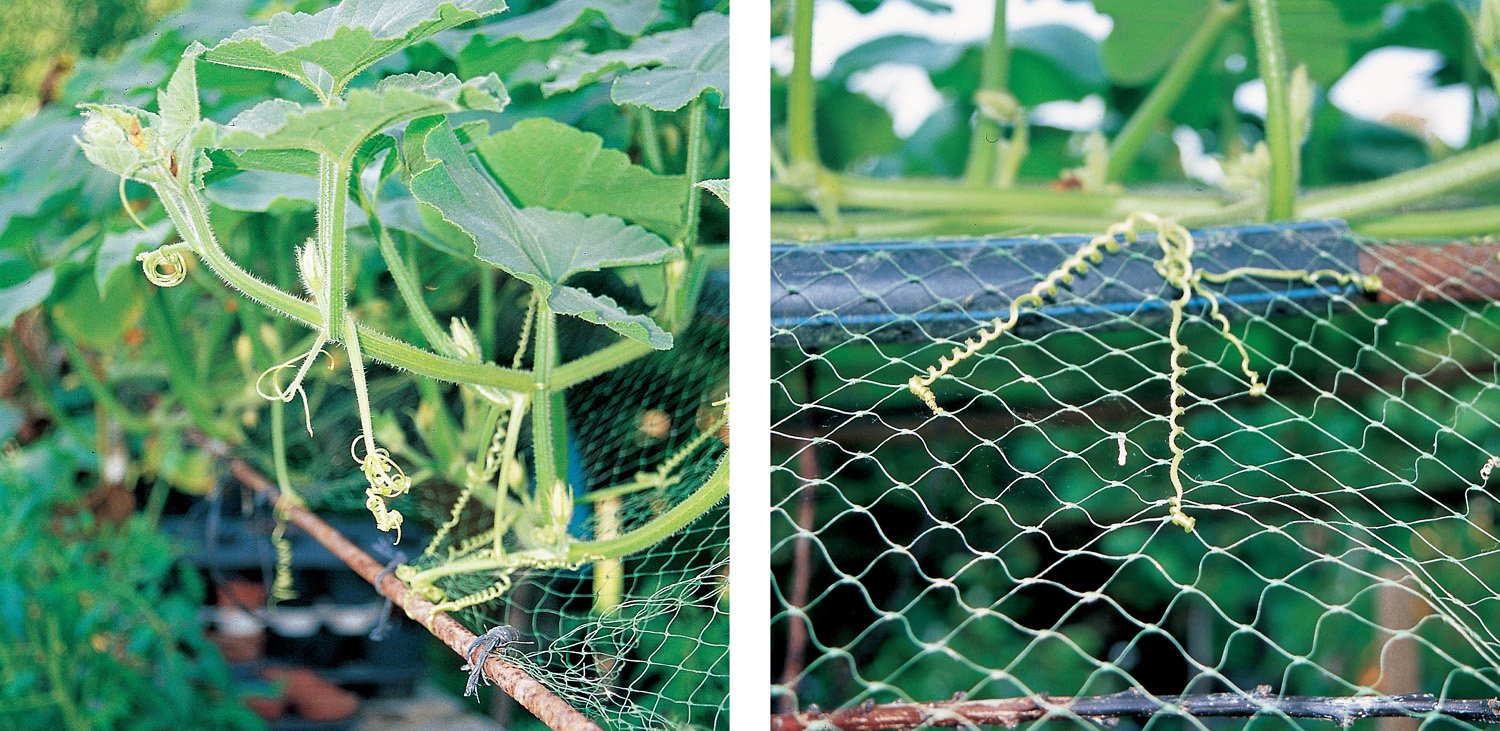 El tallo de las calabazas genera zarcillos, cuyo fin es la sujeción firme a los postes.