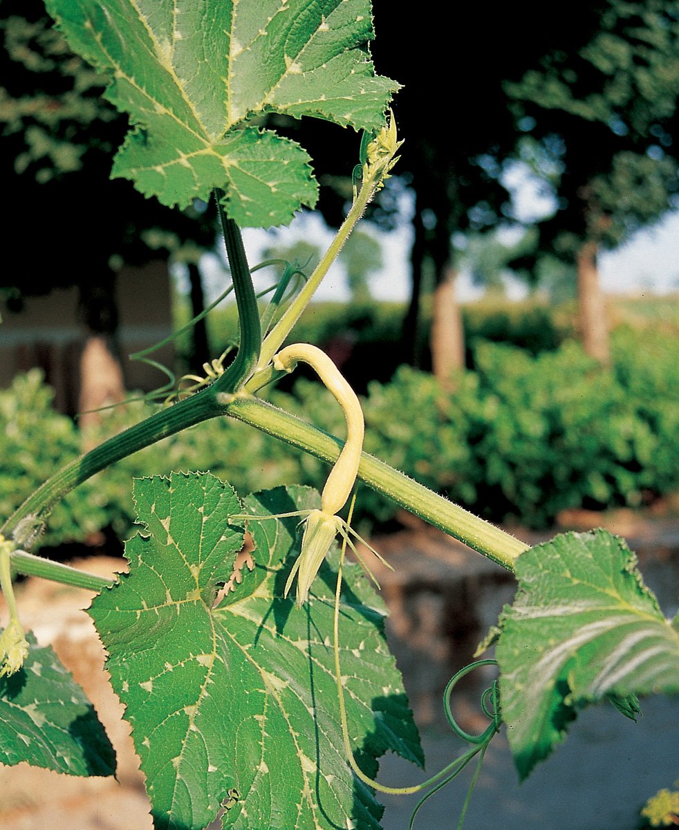 Se trata de una planta que necesita temperaturas altas, así como un clima particularmente cálido. No obstante, en verano se puede cultivar en cualquier lugar; su crecimiento es muy rápido y produce frutos cilíndricos, oblongos y sutiles, de un verde pálido muy hermoso. Asimismo, se encorvan o crecen en espiral y la parte final aparece hinchada, ya que es aquí donde se encuentran las semillas. Por lo general, se cosecha y se consume cuando los frutos están tiernos y verdes, miden entre 40 y 50 cm, y la última flor todavía no se ha marchitado. Si en la planta queda algún fruto y crece, este origina calabazas voluminosas con una pulpa fina y delicada de color naranja. Dichos frutos, que podrán consumirse como calabazas de invierno, son muy apreciados y presentan una forma alargada y recta. Hasta la llegada de los primeros fríos, se conservan mejor junto con la planta, resguardados, en una ubicación no demasiado fría, y sostenidos en postes de madera.