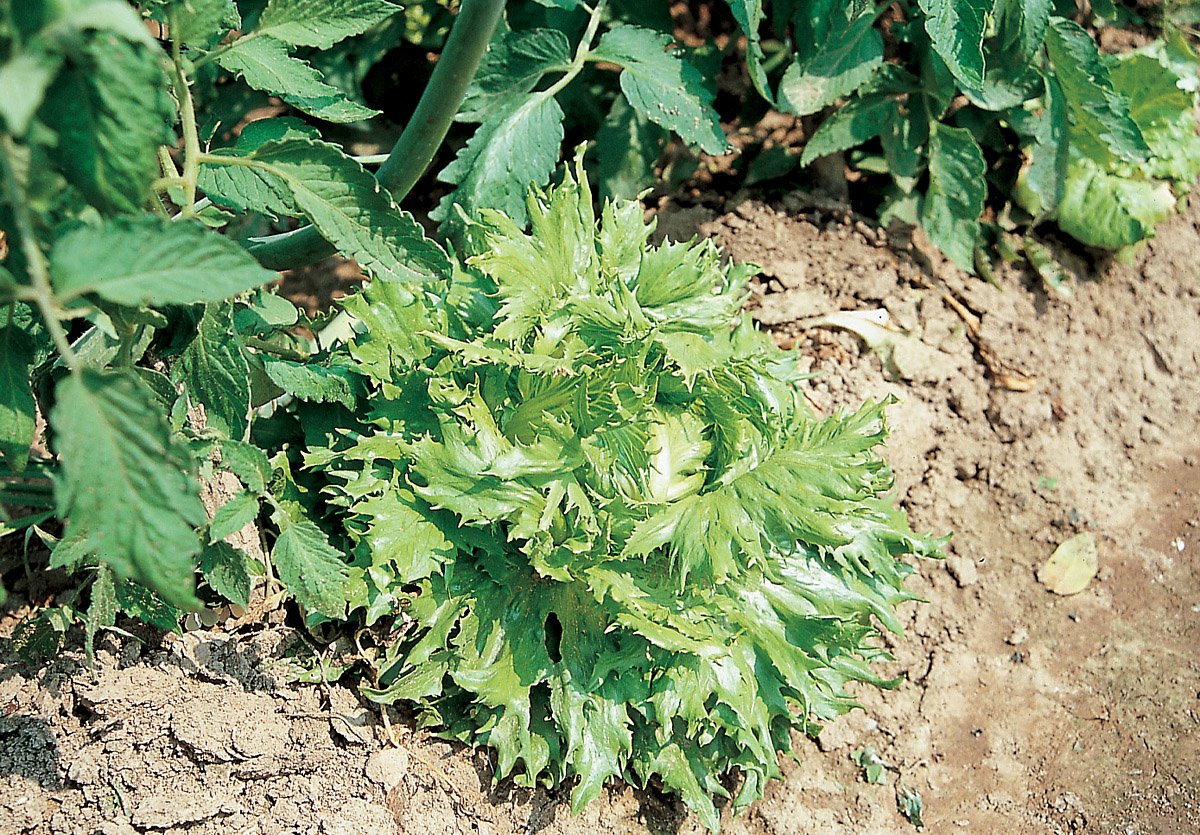 • kamalia, de porte levantado, con hojas basales de color verde intenso que se colorean de rojo intenso hacia el exterior. Resiste bien al calor y a las enfermedades más difundidas, incluidas las podredumbres;